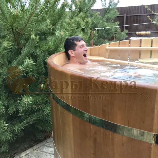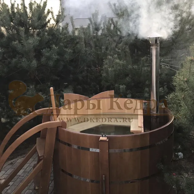 Спасибо компании «Дары Кедра» за эту замечательную купель с внутренней печкой - фурако. Принимаем процедуры на свежем воздухе! Спасибо большое! Рекомендую Всем!