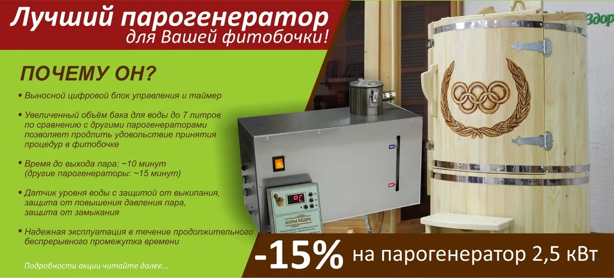Скидка -15% на парогенератор мощностью 2,5 кВт!
