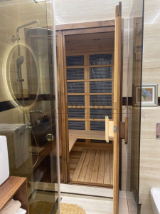 Двухместная инфракрасная сауна кабина из кедра и липы с карбоновыми излучателями