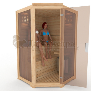 Двухместная угловая финская сауна кабина из кедра с электрокаменкой