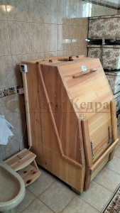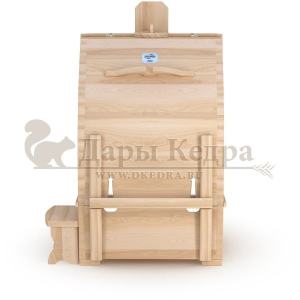 Квадратная фитобочка из кедра - это мини парная, которую можно использовать не только в спа-салонах, но и дома. Толщина стенок составляет 40-45 мм, что позволяет увеличить срок службы изделия. Откидная дверь бочки во время открывания фиксируется внешней подставкой - опорой, которая в закрытом состоянии складывается и не занимает лишнее пространство. Во время парения человек сидит внутри кедровой бочки, а голова находится снаружи. Благодаря этому исключается возможность перегрева. Встроенная ручка из кедра на двери делает эксплуатацию фитобочки более удобной.