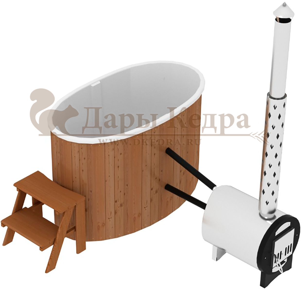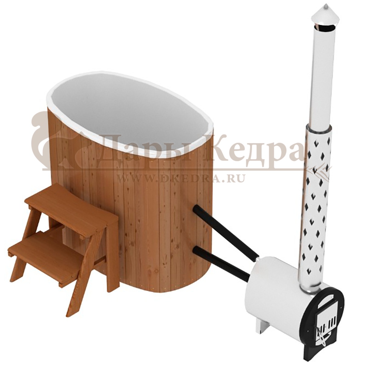 Фурако овальная из кедра со встроенной печью Это уличная баня, которой можно пользоваться круглый год. Купель представляет собой овальную емкость для воды, внутри которой располагаются сиденья из кедра. Нагрев воды происходит за счет встроенной печи, которая находится внутри купели за перегородкой. Рекомендуем приобрести термокрышку и весло для перемешивания воды для ускорения нагрева. Для удобства пользования японская баня фурако оборудована внешней и внутренней лестницей из кедра. В комплектацию этой модели входит совок с длинной ручкой, который позволяет извлекать угли и золу после эксплуатации изделия. Целебная древесина кедра богата фитонцидами и эфирными маслами, которые активируются при нагревании. Таким образом, во время процедур парения организм насыщается полезными веществами.